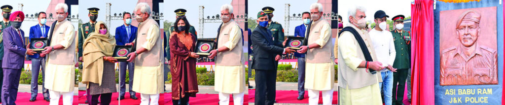 Lt Governor, Manoj Sinha honouring army veterans, Veer Naris and unveiling the mural of Ashok Chakra Awardee, Late ASI Babu Ram of JKP in presence of family members of martyr. admin December 17, 2021 Image Gallery Jammu Top J&K News Top Stories Twitter