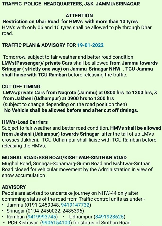 Traffic Plan & Advisory for January 19