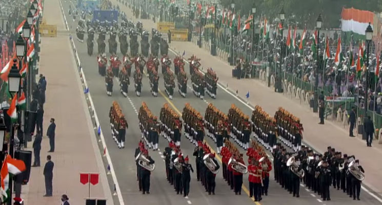 The fourth and fifth marching contingents were of Sikh Light Infantry and Army Ordnance Corps Regiment, respectively, and these soldiers wore the current uniform of the Army and carry 5.56 mm Insas rifles.