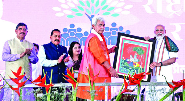 PALLI: Saying that under the dynamic leadership of Prime Minister Narendera Modi, Jammu and Kashmir’s 70-year-old dream of Ek Vidhan, Ek Nishan, Ek Pradhan stands fulfilled, Lieutenant Governor Manoj Sinha on Sunday observed that post August 5, 2019, people of the Union Territory have been able to see new dreams. “For the first time entire India right from J&K to Kanyakumari is having one flag and one leader, who is today in front of us”, Sinha said while welcoming Prime Minister Narendra Modi at a massive rally at Pali. He said, for the first time, Jammu and Kashmir is witnessing full-fledged three-tier Panchayati raj system in place, adding that post 1947 only, 15000 Cr investment reached J&K while as today, there are proposals worth Rs 52000 Crore with the J&K government of which RS 38000 Crore investment proposals are being inaugurated by the Prime Minister.