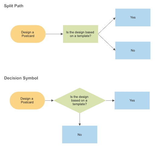 A flowchart calls for the diamond symbol to present when a task requires decision-making. However, it can be confusing and unclear for those unfamiliar with flowcharts. The diagram also becomes more difficult to navigate as it splits the data flow into two separate directions.