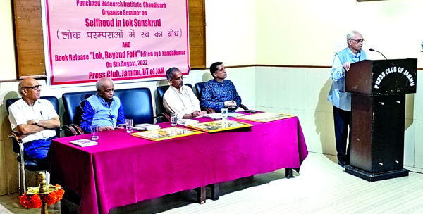 It was neither a one-way affair nor a two way lane. Yes, the mode and form of Bharatiya communication has always been multifaceted. The whole society takes part in it; not only that, nature too is taken into consideration. Hence, our style of Samvaada is comprehensive, and to understand it properly, we’ve to see and feel it in its totality, writes J Nandkumar in the opening chapter of his book Lok, Beyond Folk'. The book was unveiled at a function here on Monday at the Press Club Jammu where many intellectuals drawn from universities participated. These lines above have been extracted from Nandkumar's write-upLokmanthan: Vision and Mission’.
