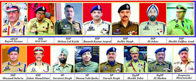 ADGP Rajesh Kumar 1995 IPS officer of AGMUT cadre presently on deputation to CRPF, SSP Mohan Lal Kaith and DySP Janardhan Singh have been awarded the President’s Police Medal for Distinguished Service, while police medal for meritorious service has been awarded to 15 Officers and officials.