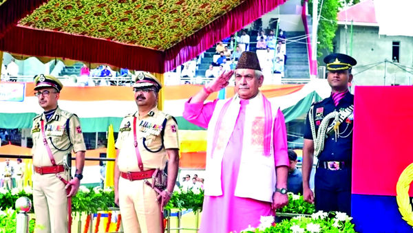 SRINAGAR: Lieutenant Governor, Manoj Sinha hoisted the Tricolour at the function on the momentous occasion of 76th Independence Day, at Srinagar on Monday morning.