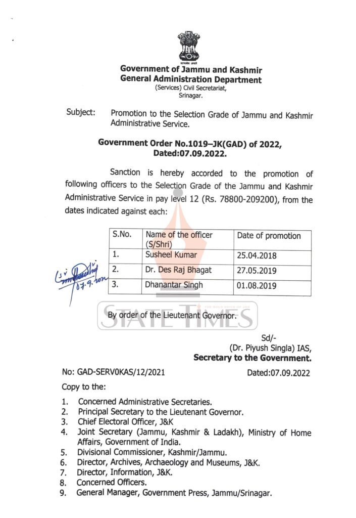 Three JKAS Officer promoted to Selection Grade