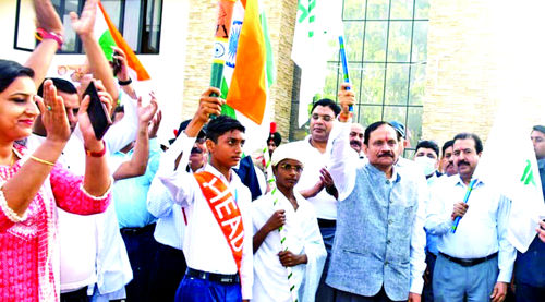 JAMMU: Advisor to Lieutenant Governor, Rajeev Rai Bhatnagar on Wednesday flagged off the Shanti Yatra from Teachers Bhawan here to start the month long celebrations in view of 153rd Birth Anniversary of Mahatma Gandhi being celebrated as Gandhi Mahotsav.