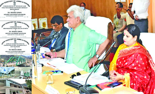 The three mega projects worth Rs 20.48 cr inaugurated by the Lt Governor today included two PMDP projects – Rs 12 cr worth 25 Bedded Sub-District Hospital at Atholi Padder and a New receiving station 33/11KV at Hatta costing Rs 4.31 cr, besides 70R Double lane steel truss Bridge over river Chenab at Bhandarkoot under CSS build at the cost of Rs 4.17 cr.
