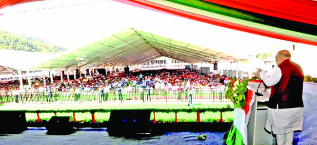 “Today’s rally is a befitting reply to those who used to say that there would be blood bath if Article 370 is abrogated,” he said.