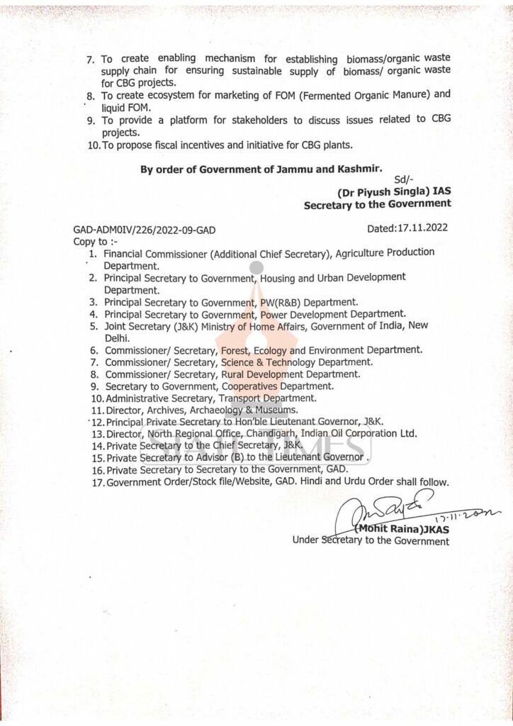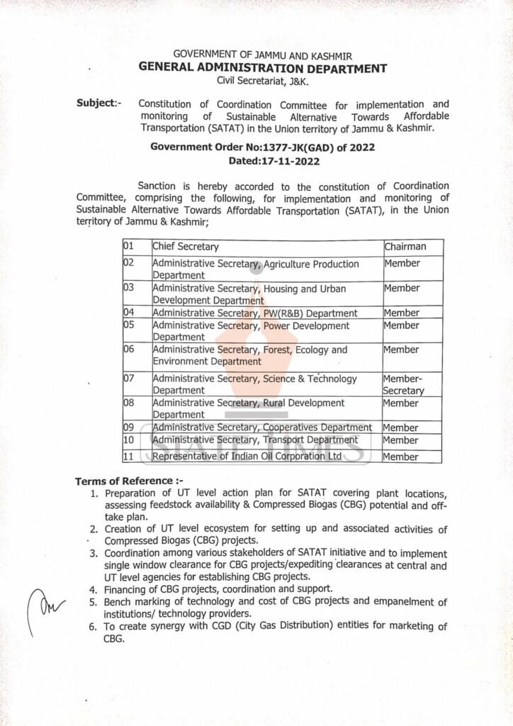 J&K Govt constitutes 11 member Coordination Committee for implementation and monitoring of SATAT in J&K UT admin November 17, 2022 Jammu Latest News Top JandK News