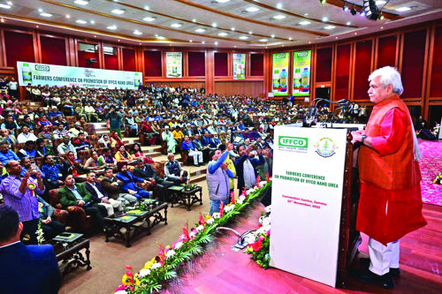 Congratulating Indian Farmers Fertilizer Cooperative Ltd (IFFCO) for developing Liquid Nano Urea aimed at reducing pollution and increasing crop production, the Lt Governor said Liquid Nano Urea is making a positive impact in J&K’s agriculture sector.