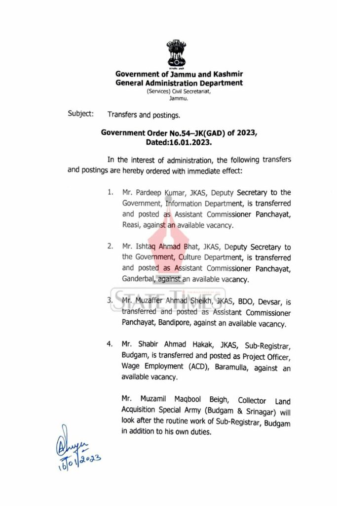 7 JKAS officers transferred and posted admin January 16, 2023 Image Gallery Jammu Latest News Top JandK News Twitter