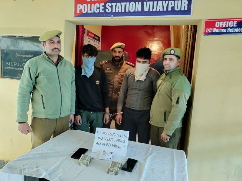 Mushtaq Ali alias “Kaka” of Bari Brahmana and Md Arif alias “Billa” of Ramkot-Kathua were arrested during checking along the Jammu-Pathankot Highway, Senior Superintendent of Police (Samba) Benam Tosh said.