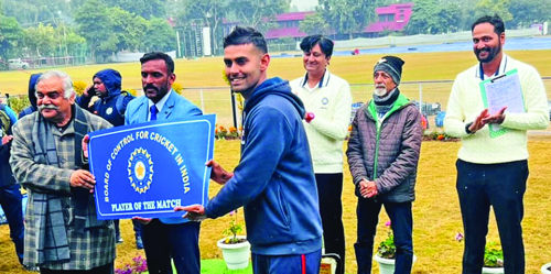 He was presented player of the match award by the Match Referee, Fazil Mohammed in the presence of Brig Anil Kumar, Member-Administration JKCA and the two Umpires of the match namely Pashchim Pathak and Tony Emmatty.