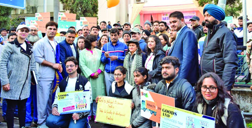 The Chief Secretary maintained that those paying their taxes honestly on time are the real builders of the nation. Dr Mehta encouraged the participants including the students to generate awareness among the public about taking authentic invoices and making digital payments. He asked them that the taxes paid by the people are proportionate to the welfare measures taken by the government for them. He also sensitized the businessmen about the link between the payment of taxes and easy access to credit from the financial institutions to them. Commissioner State Taxes, Rashmi Singh appealed the general public as well as traders to cooperate in their efforts towards compliance with tax rules. She highlighted various short term and long term benefits it has for the citizens at large. She gave out that the Department is alive to the fact of facilitating those filing their taxes responsibly. She said that those resorting to dishonest practices can never be true patriots of the nation. The officers who took part in this flagging off ceremony also includes Commissioner CGST, H.B Negi; Secretary in Finance, Nitu Gupta; DG Expenditure Finance, PK Bhat; Additional Commissioner (A&E), STD, Namrita Dogra; Additional Commissioner, (TPPAR), STD, Ankita Kar and many other senior officers of the department.