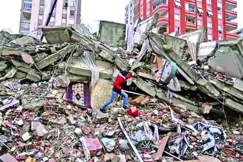 Azmarin (Syria): A powerful 7.8 magnitude earthquake rocked wide swaths of Turkey and Syria early Monday, toppling hundreds of buildings and killing more than 2,300 people.