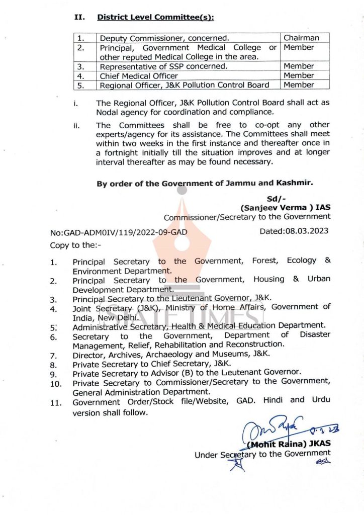 Sanction is hereby accorded to the constitution of the Union territory Level Committee and District Level Committee(s), with the following composition, for monitoring the implementation of Bio-Medical Waste (BMW) Rules, 2016 in Union territory of Jammu and Kashmir, read order below: