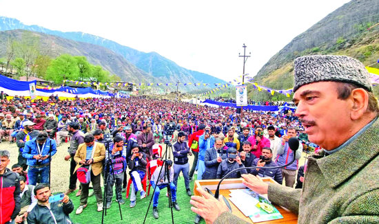 “Our sand, stones, minerals are not given to us but contractors from outside are preferred which deprives our people of rights over sand, stones and minerals,” Azad said addressing a massive gathering of people from all villages here.