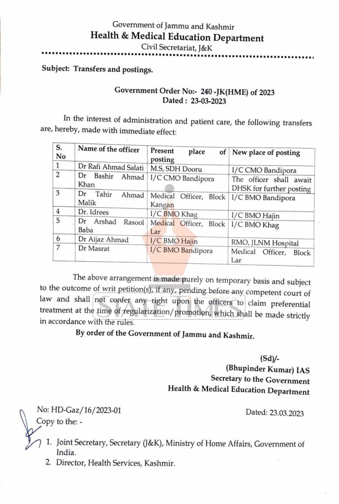 In the interest of administration and patient care, the following transfers are, hereby, made with immediate effect, read order below: