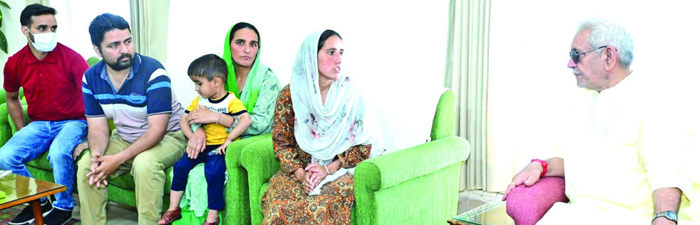 JAMMU: Lieutenant Governor Manoj Sinha met the family members of martyr civilian Sanjay Sharma at Raj Bhawan, here on Thursday.