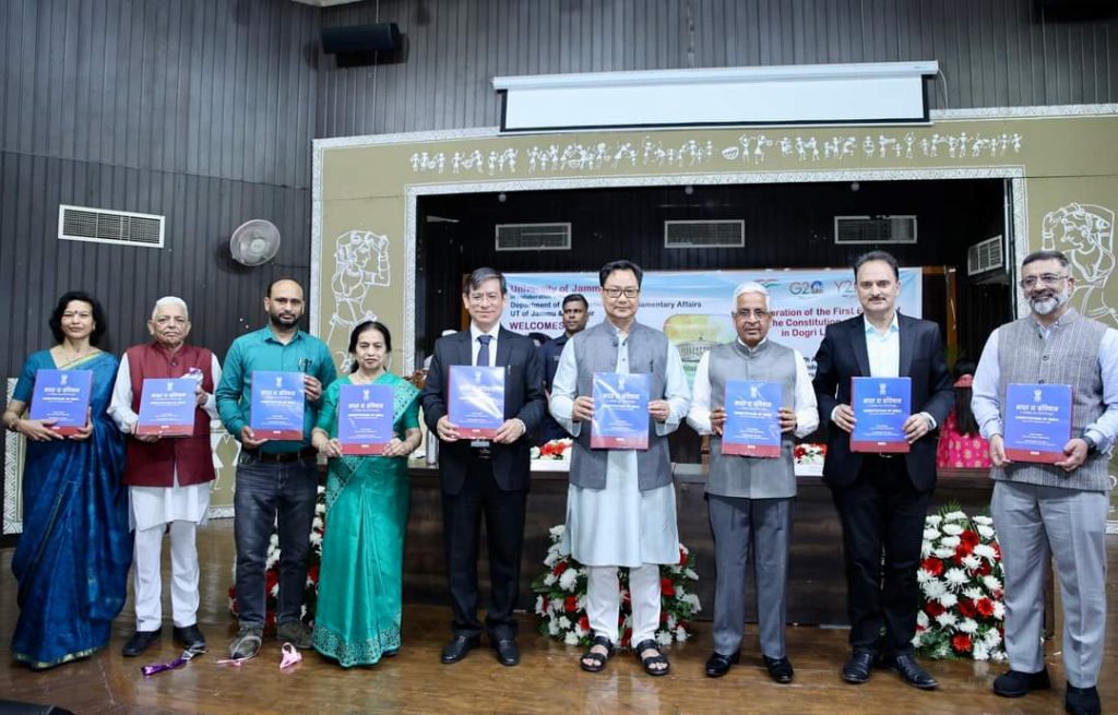 Extremely proud moment for Jammu & Kashmir as the first edition of the Constitution of India in #Dogri Language is launched at University of Jammu by Hon’ble Union Minister of Law and Justice Shri @KirenRijiju, tweets BJP J&K