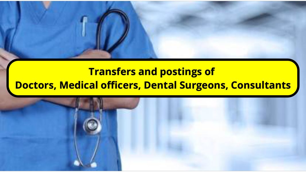 In the interest of administration and patient care, the following transfers and postings of Doctors, Medical officers, Dental Surgeons, Consultants are hereby ordered with immediate effect, read complete order below.