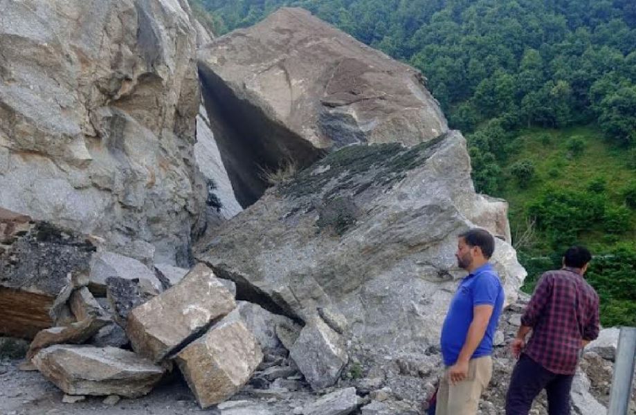 The incident occurred in the morning when a massive rock rolled down the hill and blocked the road, they added.