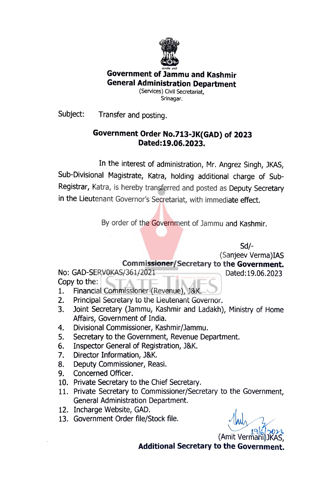 Angrez Singh posted Deputy Secy in LG Secretariat admin June 19, 2023 Image Gallery Jammu Jammu and Kashmir Kashmir Latest News Twitter