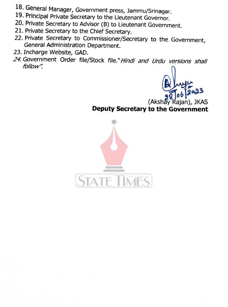 “The services of Akanksha Kalsotra, Jr. Scale JKAS, Under Secretary in the J&K Academy of Art, Culture and Languages; Iftakhar Ahmed, Jr. Scale JKAS, awaiting orders of adjustment; and Monika Sambyal, Jr. Scale JKAS, Under Secretary, Information Technology Department are placed at the disposal of Information Department for their further postings,” reads another order.