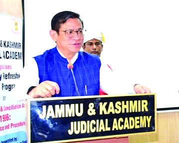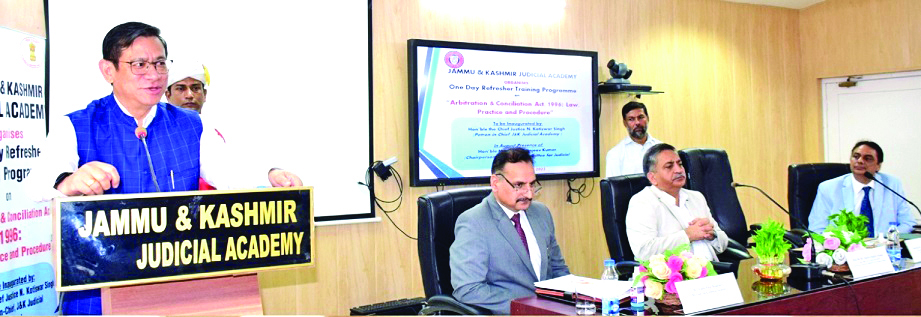 JAMMU: Under the patronage of Chief Justice, High Court of Jammu & Kashmir and Ladakh, (Patron-in-Chief, J&K Judicial Academy), N. Kotiswar Singh and able guidance of Justice Sanjeev Kumar, Chairperson, Governing Committee for J&K Judicial Academy and Justice Javed Iqbal Wani, Justice Rahul Bharti, and Justice Moksha Kazmi, members of Governing Committee, J&K Judicial Academy on Saturday organized a one day Refresher Training Programme on “Arbitration & Conciliation Act, 1996; Law, Practice and Procedure” for District & Sessions Judges and Sub-Judges of Jammu Province at Judicial Academy, Janipur, Jammu.