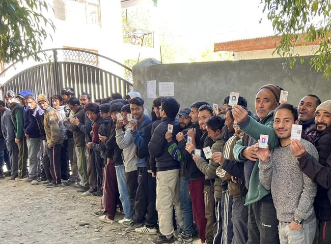 Voters across age groups turned out in large numbers to cast their vote in the 5th LAHDC elections in which 87 candidates are trying their luck for 26 seats of the 30-member hill council. Four councillors with voting rights are nominated by the administration.