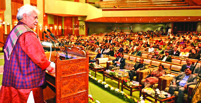SRINAGAR: Lieutenant Governor Manoj Sinha addressed the J&K UT Foundation Day celebrations in Srinagar, on Tuesday.