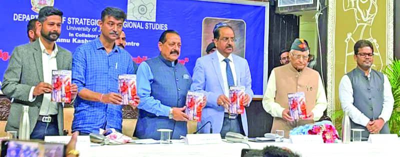 JAMMU: Union Minister Dr. Jitendra Singh released a book “Mudrarakshasa Mein Rajneeti” during a grand function held at Brig. Rajinder Singh Auditorium, University of Jammu.