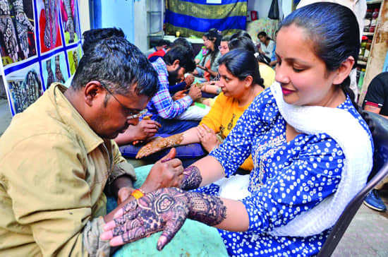 Karwa Chauth celebrations seem incomplete without mehandi. Temporary stalls have been put up by mehendi designers in front of malls and in local markets where people can get beautiful mehendi drawn on their hands at a cheaper price. Mehandi imprints are also becoming common.