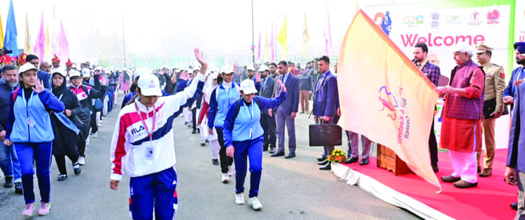 Rajeev Rai Bhatnagar, Advisor to Lt Governor; Dr Mandeep Bhandari, Principal Secretary to Lt Governor, Administrative Secretaries; Divisional Commissioner Kashmir and senior officers of Civil and Police Administration were present at Bakshi Stadium.