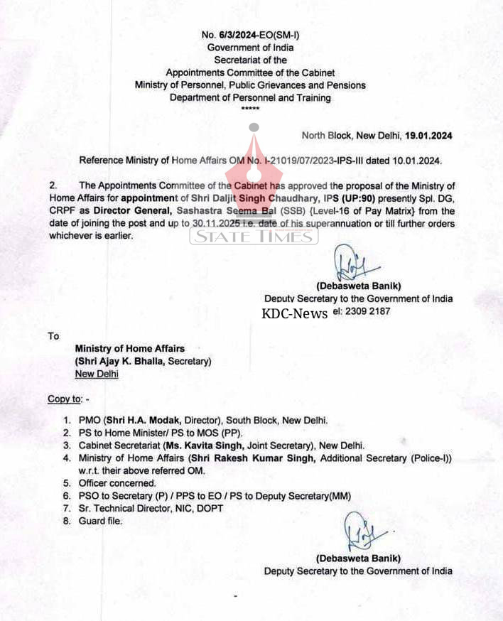 Daljit Singh Chaudhary appointed Director General, Sashastra Seema Bal admin January 19, 2024 Image Gallery Jammu Jammu and Kashmir Latest News Top J&K News