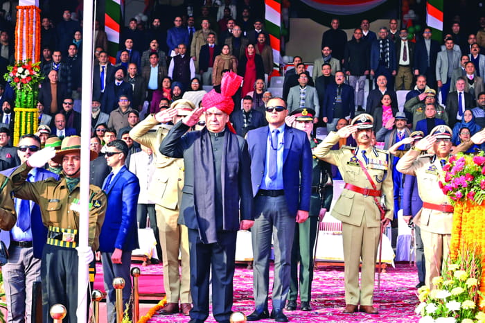 JAMMU: Lieutenant Governor Manoj Sinha unfurled the National Flag at the UT level function on the occasion of the 75th Republic Day, at MA Stadium on Friday morning.