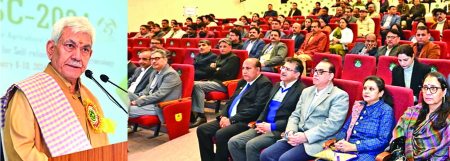 “With this scientific solution, we can mitigate the impact of climate change and will be able to generate higher farm revenue from the same piece of land,” the Lt Governor said while addressing the inaugural session of the 6th J&K Agricultural Science Congress on “Diversification of Agriculture for Self-Reliant Mountain Agro-Ecology” at SKUAST Jammu.