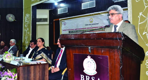 JAMMU: The three-day workshop on Capacity Building and Leadership Development for the implementation of NEP 2020, with special emphasis on Internationalization of Higher Education concluded here this afternoon with a valedictory function held at the Brigadier Rajinder Singh Auditorium, JU. Atal Dulloo, Chief Secretary, UT of J&K and Chief Guest on the valedictory function of the workshop, highlighted the significance of capacity building in leadership development, considering India’s position as the world’s second-largest education system. Dulloo said that as a hub for higher education institutions in the region, the JU plays a pivotal role in offering multidisciplinary education, fostering research-oriented undergraduate training, and introducing innovative programs such as the “Design Your Degree” initiative.
