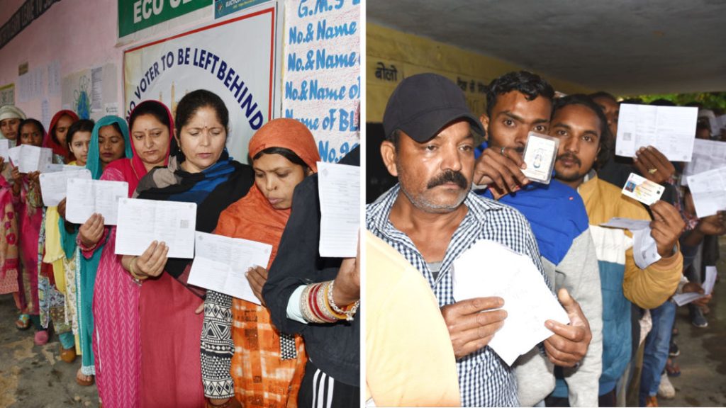 As the weather conditions improved in most places around noon, long queues started forming outside polling stations in the constituency that encompasses an expansive area of 16,707 square kilometres. It consists of 18 Assembly segments spanning five districts — Kishtwar, Doda, Ramban, Udhampur and Kathua. However, it started raining again in most parts of the constituency around 4.30 pm.