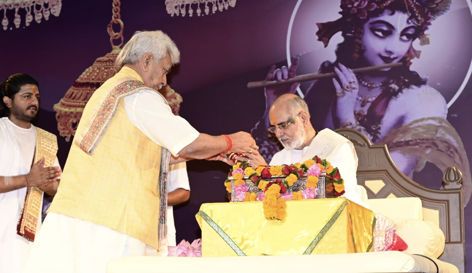 Righteous life is only path to attain spiritual growth & to awaken our own divinity. Urged devotees to become messengers and spread Bhagavat’s message and vision in the society and inspire people to dedicate themselves to the cause of equality, brotherhood, humanity and harmony, posts official Twitter profile of The Office of Lt. Governor of J&K