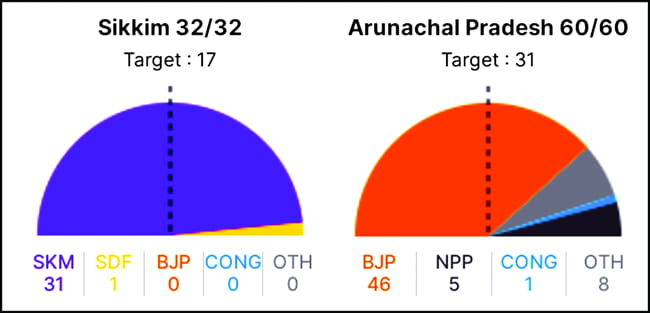 Meanwhile, led by its president and Chief Minister Prem Singh Tamang, the Sikkim Krantikari Morcha (SKM) on Sunday returned to power in the Himalayan state–Sikkim for the second consecutive term by a landslide victory, winning 31 seats in the 32-member assembly.