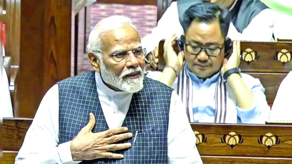 Modi’s attack on the Congress in the Upper House took an unexpected turn when the Opposition staged a walkout midway through his speech. This prompted sharp reactions from both the Prime Minister and Rajya Sabha Chairman Jagdeep Dhankhar.
