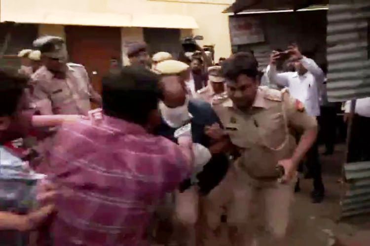 Around 2.15 pm on Saturday, Madhukar was brought by the police to the Bagla Combined District Hospital in Hathras for a medical examination amid heavy security deployment in and around the government hospital.