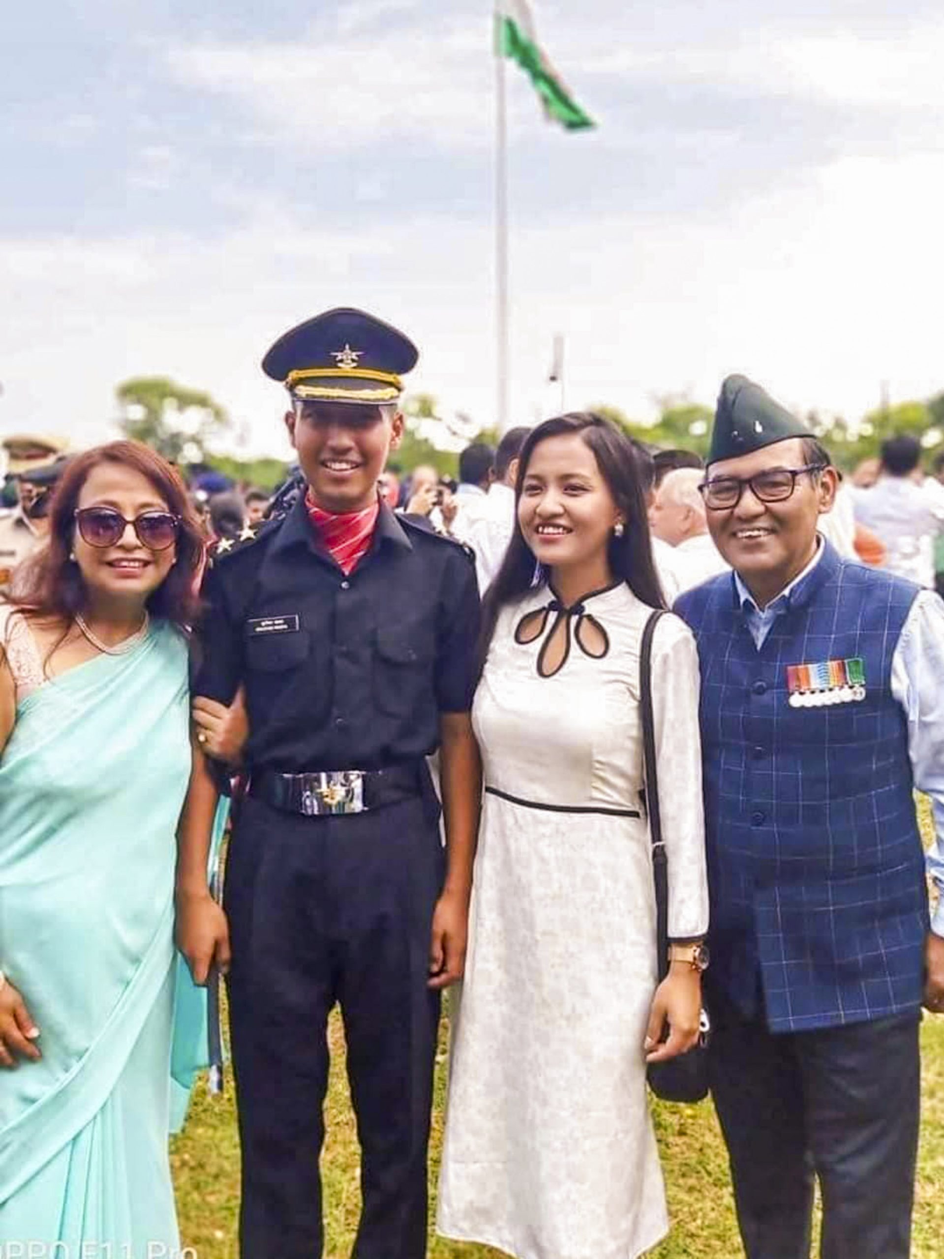 Captain Brijesh Thapa with his families in an undadted photograph. Thapa along with three other army personnel was martyred on Tuesday in the encounter between security forces and terrorists in Doda district.