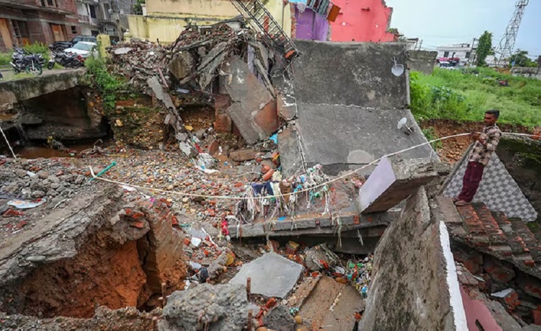 Two homes collapsed and a portion of a road was washed away in the Bhatindi locality but there was no casualty, the officials said.