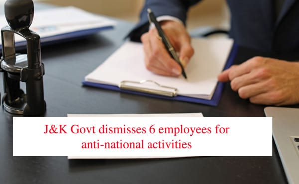SRINAGAR: The Jammu and Kashmir Government on Saturday dismissed six employees, belonging to various departments: five from Police Department (Constables) and one from Education Department (Teacher) in terms of Article 311 of the Constitution of India for their deep involvement in anti-national activities.