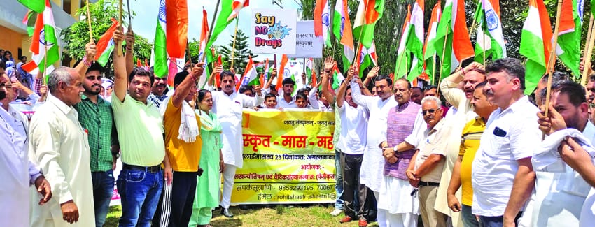 “The skeletons of the Mohabbat Ki Dukan salespersons and Post X warriors have fallen from the cupboard and their real faces are telling the tales of their evil designs to divide the society, hurt the national interest and to play vote bank politics”, Devender Rana on Monday said while talking to the media persons at the side-lines of a grand awareness Tiranga rally, organised by the Shri Kailakh Jyotish avim Vedic Sansthan Trust under the stewardship of Rohit Shastri from Government Higher Secondary School Dansal to the Tehsil Office Dansal, to promote the Sanskrit language and de-addiction.