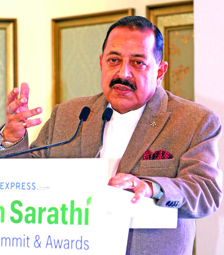 Union Minister Dr. Jitendra Singh addressing the “Green Summit” organised by the Indian Express group at New Delhi on Friday.