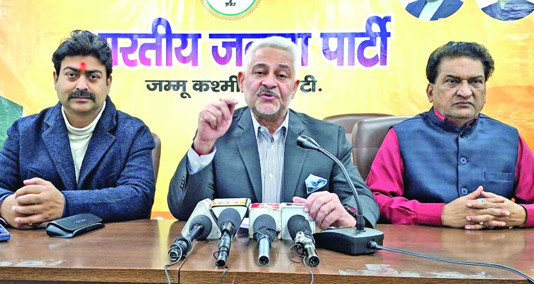 Arun Gupta, Spokesperson, J&K BJP accompanied by Balbir Ram Rattan, Spokesperson and Dr. Pardeep Mahotra, Media Secretary was addressing a press conference at party headquarters, Trikuta Nagar, Jammu.