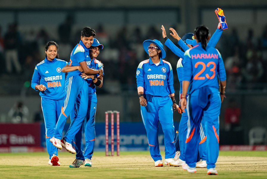 Opting to bat, India produced a solid batting show with Harleen Deol (115) hitting a century and Smriti Mandhana (53), Pratika Rawal (76) and Jemimah Rodrigues (52) scoring fifties to take India to 358 for five.